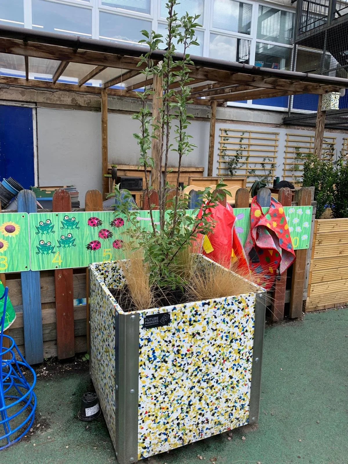I designed and created an assessable safe space for SEND students to grow and enjoy a greener, more natural space in a previously unloved, hard landscaped area of the playground. I then ran a growing session for students and a teaching session for staff to ensure the space is well maintained
