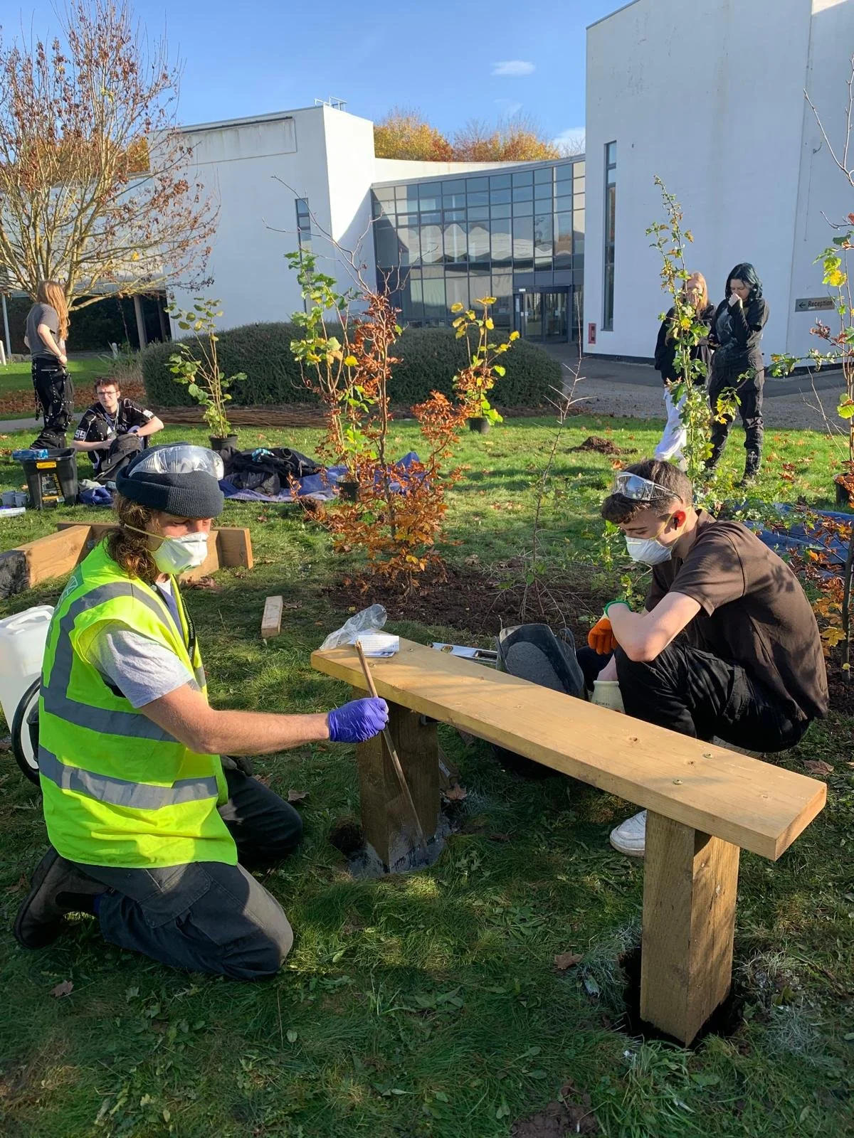 As part of a GrowNotts project with students from the college designed and ran a series of workshops creating a new natural outdoor space for students at the EMTEC site, Ruddington. Students inputted to the design and planting ideas and we built and planted up the space creating an inviting outdoor space for nature, staff and pupils.